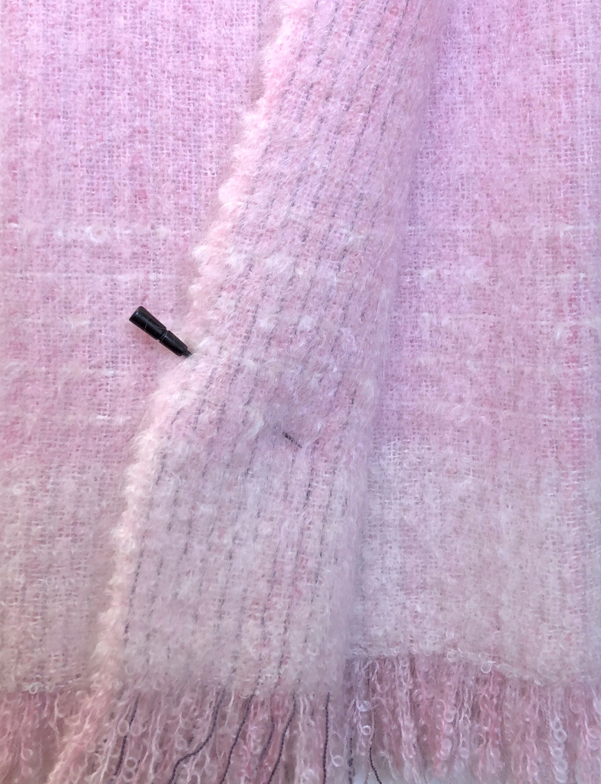 Finest quality, light weight, kid mohair throw with a hand woven pattern.
