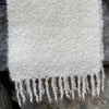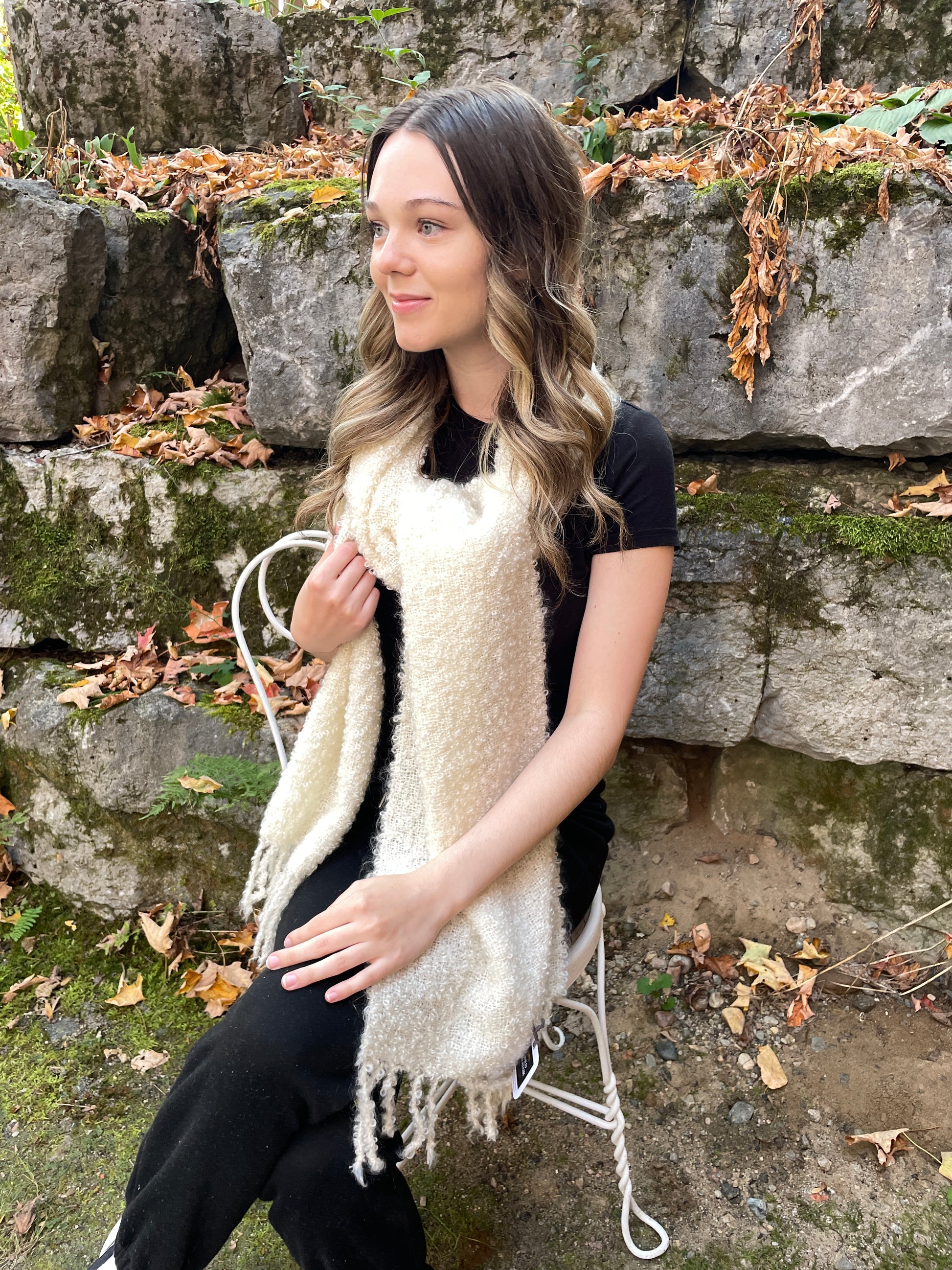 Thick and soft, this textured handwoven scarf is designed to lie flat or fold into a simple knot yet wide enough for a softly draped shawl.